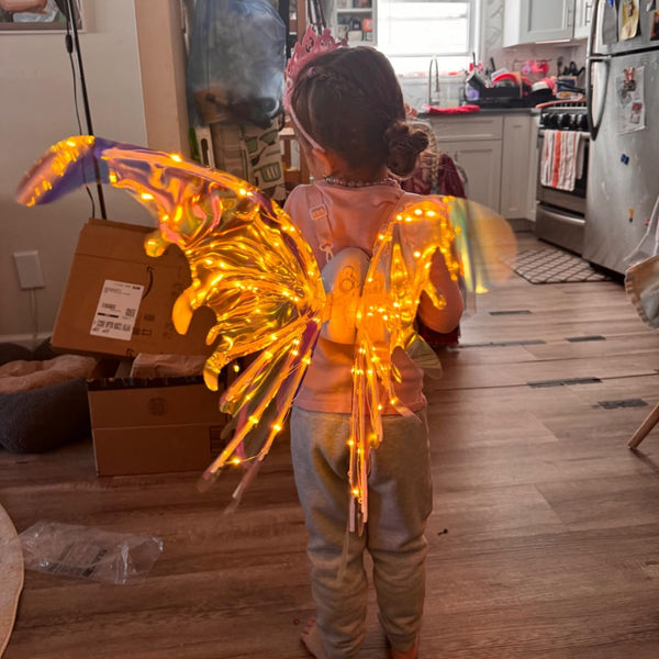 With these light-up, musical fairy wings, that dream becomes playtime reality.